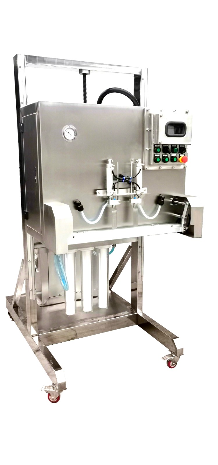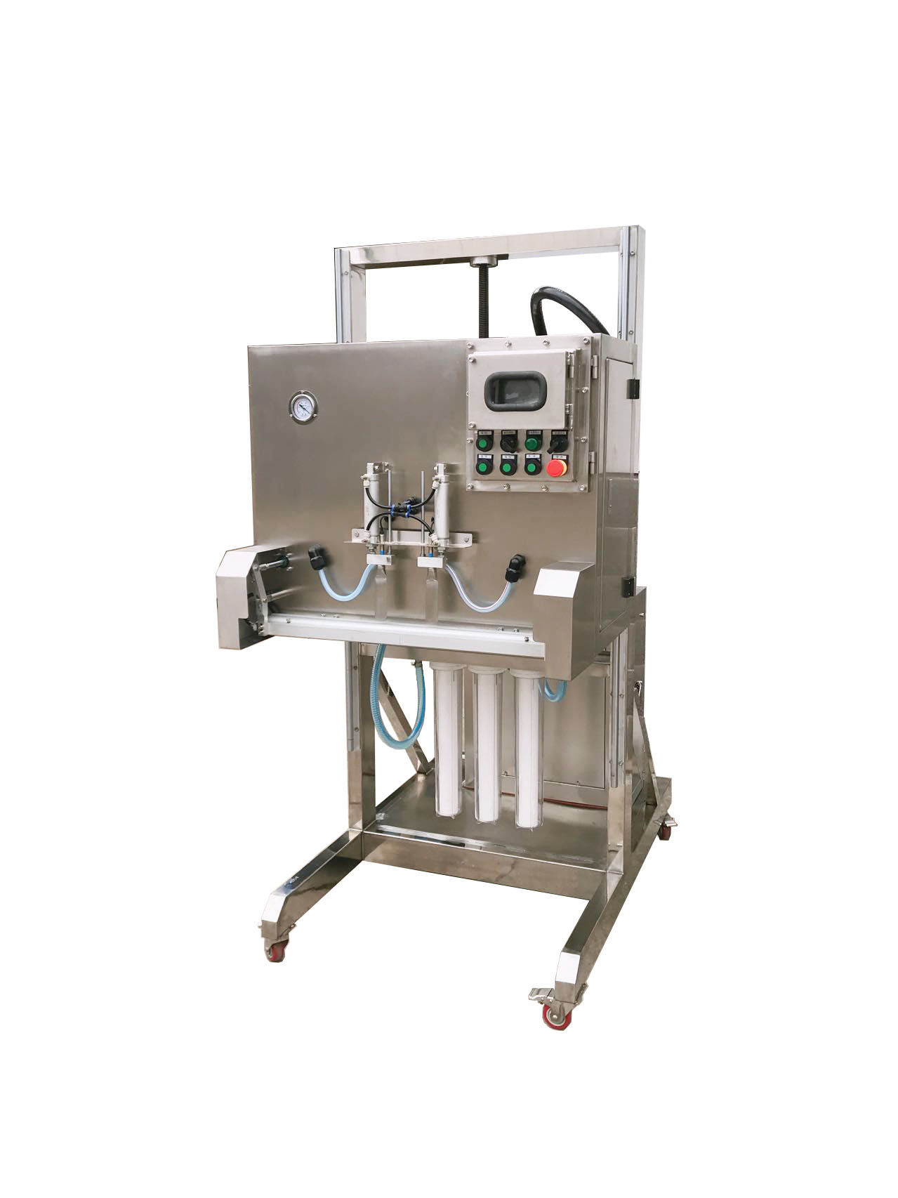 機(jī)頭可上下調(diào)節(jié),PLC觸摸屏控制,三級(jí)1微米過(guò)濾。